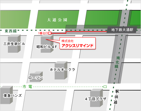 場所: 株式会社アクシスリマインド 研修室 札幌市中央区大通西5丁目昭和ビル4F (地下鉄大通公園1番出口直結) п@011-788-5137